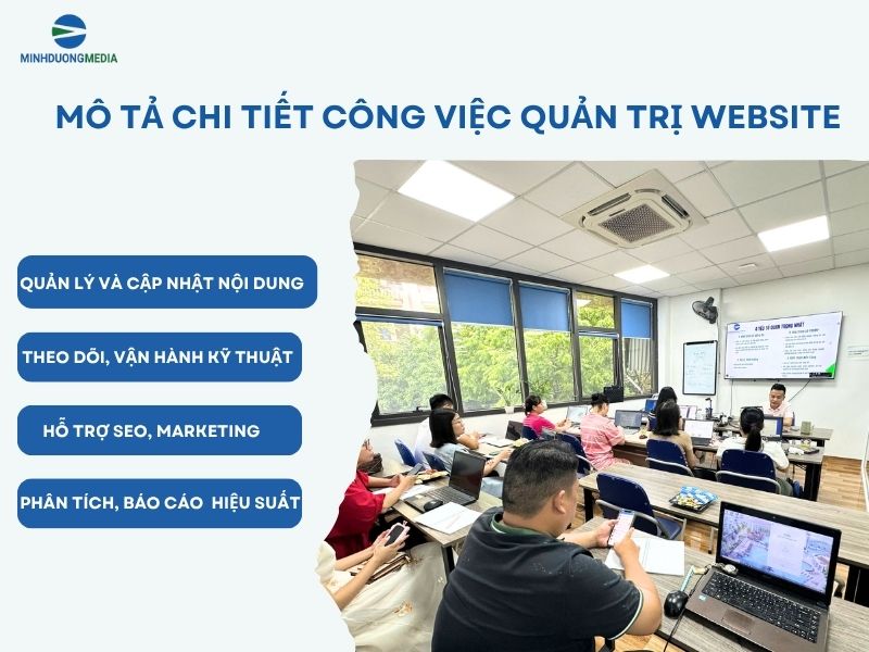Công việc quản trị website là một vị trí quan trọng trong thời đại số, đóng vai trò duy trì và tối ưu hiệu quả hoạt động của website doanh nghiệp. Công việc này đòi hỏi sự kết hợp giữa kỹ thuật, nội dung và tư duy phân tích, nhưng không yêu cầu bạn phải là lập trình viên chuyên sâu.