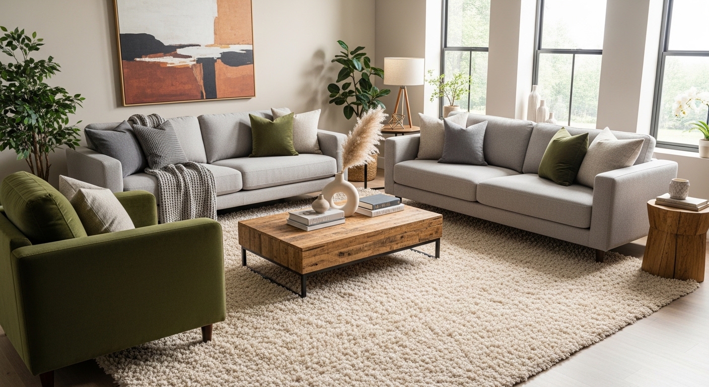 Chọn kích thước thảm lông xù ghế sofa chuẩn theo không gian