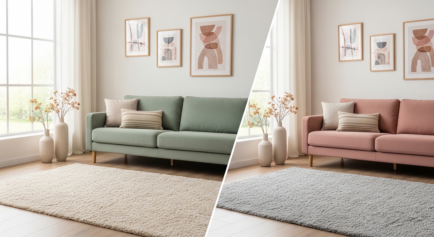 - Sofa màu sáng: có thể chọn thảm pastel hoặc họa tiết nhẹ